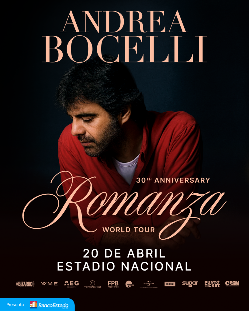 El tenor italiano Andrea Bocelli se presentará en el Estadio Nacional de Chile el 20 de abril, como parte de su gira internacional para celebrar los 30 años de su álbum revelación “Romanza”.