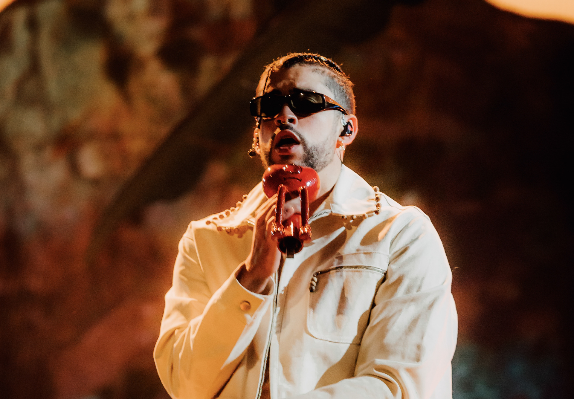 Benito Antonio Martínez Ocasio, conocido como Bad Bunny, ha redefinido la música urbana con su estilo irreverente y experimental. Con álbumes como “YHLQMDLG” y “Un Verano Sin Ti” (primer disco en español nominado a Álbum del Año en los Grammy), ha batido récords en todas las plataformas digitales.