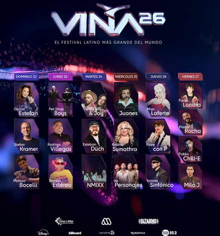 El Festival de Viña del Mar 2026 ya toma forma y cada vez se ve más cercano el inicio de la fiesta musical del verano. En efecto, este viernes se dieron a conocer las figuras que serán parte del espectáculo viñamarino y durante esta jornada, la organización dio cuenta de los días en que cada…