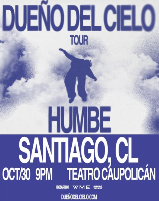 HUMBE viene a presentar a sus fanáticos chilenos su nuevo álbum “DUEÑO DEL CIELO” además de sus grandes éxitos como “KINTSUGI” – canción que supera los 115 millones de reproducciones en Spotify y que consolidó la conexión con audiencias de toda Latinoamérica.