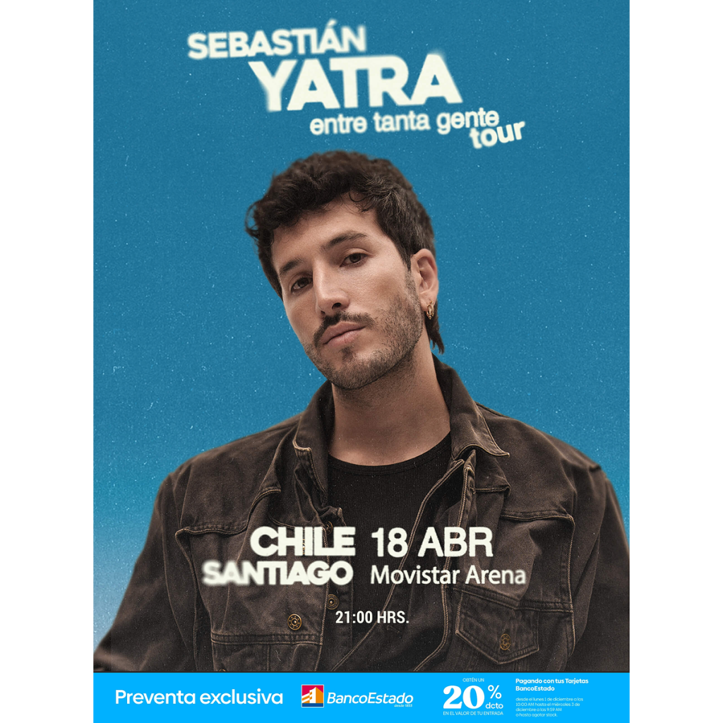 Martes 25 de noviembre de 2025.- El cantante colombiano Sebastián Yatra se presentará el viernes 18 de abril de 2026 en una esperada jornada que lo trae de regreso a Chile en el marco de su gira “Entre Tanta Gente Tour”, un espectáculo